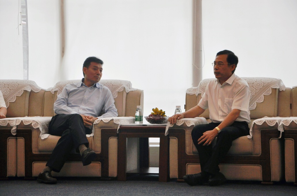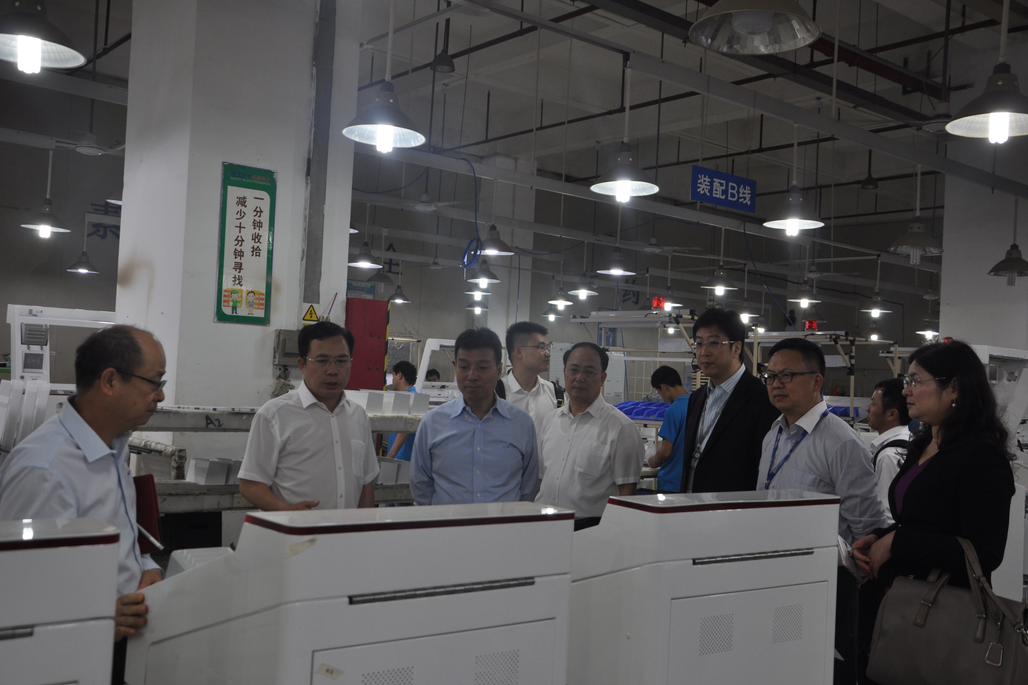 證通電子總裁曾勝強(左三)向寧效云行長(左二)一行介紹證通規劃布局