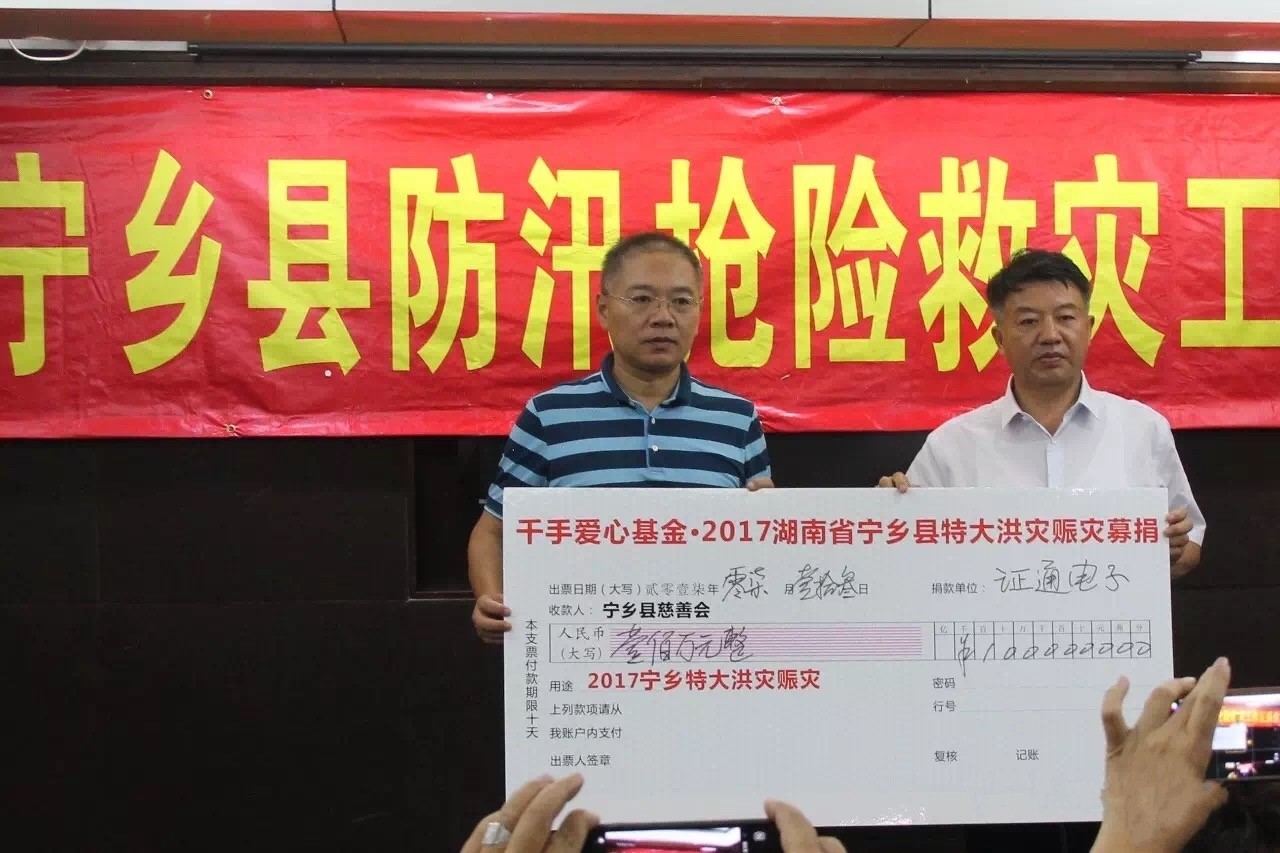 證通電子向寧鄉縣慈善會捐贈善款人民幣100萬元