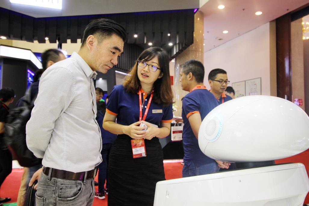 步入展廳,觀眾做的第一件事就是對(duì)銀行服務(wù)機(jī)器人小僮開(kāi)啟“圍觀模式”,有跟他“嘮嗑”的,有用它辦理銀行業(yè)務(wù)的,也有駐足與他拍照合影的,炫白的機(jī)器外殼、胖萌胖萌的身材以及靈活的移動(dòng)路線規(guī)劃,搭配上科技感的LED燈光,瞬間吸引了全場(chǎng)的關(guān)注目光,工作人員向觀眾分別展示了人機(jī)語(yǔ)音交互、自主智能避障/規(guī)劃、銀行業(yè)務(wù)辦理以及強(qiáng)大的云端管理系統(tǒng),并介紹到小僮的高度是根據(jù)客戶的坐姿高度而設(shè)計(jì),可以很好地貼合用戶辦理業(yè)務(wù)時(shí)的操作習(xí)慣,現(xiàn)場(chǎng)觀眾在體驗(yàn)中完成了對(duì)機(jī)器人產(chǎn)品性能與優(yōu)勢(shì)的了解,甚至于對(duì)小僮有些“愛(ài)不釋手”。