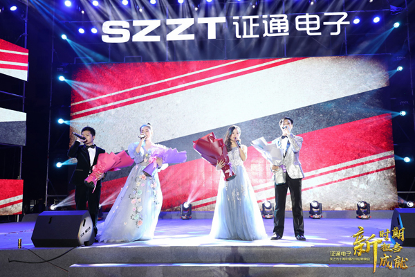 2017年12月29日,“證通電子慶上市十周年、迎2018新年晚會(huì)”在深圳光明新區(qū)證通電子產(chǎn)業(yè)園盛大開(kāi)幕,本次晚會(huì)的主題為“新時(shí)代、新?lián)?dāng)、新成就”。恢宏的露天式大舞臺(tái)、耀眼的光柱、璀璨的屏幕,今夜我們歡聚一堂、載歌載舞,為了慶賀證通電子上市十周年的輝煌成就,同時(shí)也預(yù)祝新時(shí)代下證通能夠繼續(xù)蓬勃發(fā)展。