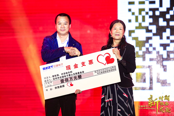 多年來(lái)證通一直致力于做一家勇于承擔(dān)社會(huì)責(zé)任的公司,“證通愛(ài)心互助基金會(huì)”至今已幫助139人次。今年的晚會(huì)現(xiàn)場(chǎng),公司總裁曾勝?gòu)?qiáng)和夫人許忠桂共同以個(gè)人名義,為愛(ài)心互助基金會(huì)捐獻(xiàn)100萬(wàn)元人民幣。