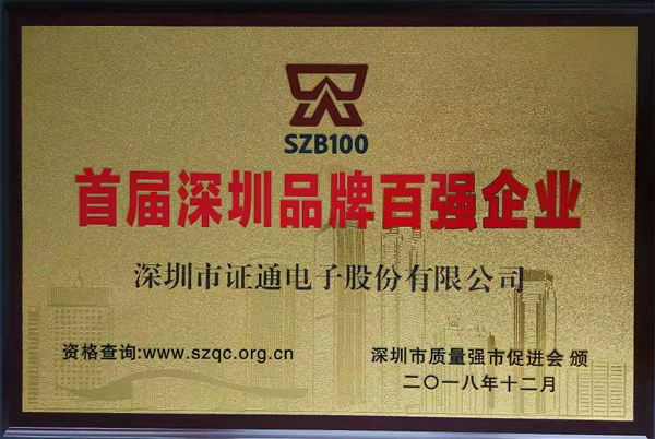 2018年12月3日,深圳市品牌建設促進大會在市民中心召開,副市長王立新、中國質量協會副會長兼秘書長段永剛、深圳市質量強市促進會會長馬蔚華出席并致辭。會上發布并表彰了首屆“深圳品牌百強”企業,證通依托于多年來在相關行業的品牌積累和穩健發展,位列百強