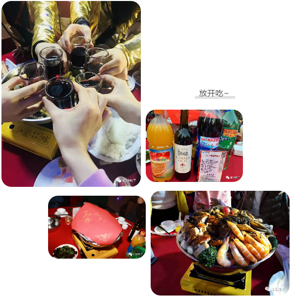 此次的席宴的大盆菜整整十層可以說是十分良心了,什么油燜大蝦、客家咸雞、紅燒龍利魚、特色墨魚丸、荷塘蓮藕……多到數(shù)不過來,能吃撐的年會(huì)才是好年會(huì)~