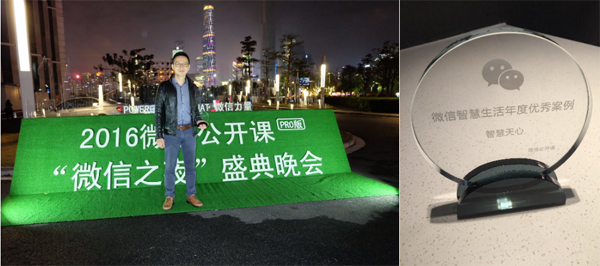 智慧商業項目獲得2016年微信智慧生活年度優秀案例