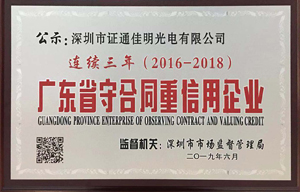 近日,深圳市證通電子股份有限公司及旗下兩家子公司(深圳市證通佳明光電有限公司、深圳市證通云計算有限公司)分別獲深圳市市場監(jiān)督管理局授予的2018年度“廣東省守合同重信用企業(yè)”證書。