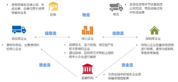證通電子就區(qū)塊鏈在供應(yīng)鏈金融的應(yīng)用做了深入的探索。供應(yīng)鏈金融的實質(zhì)是圍繞供應(yīng)鏈上的一家核心企業(yè),通過管理它的上下游的資金流、物流、信息流來為整條產(chǎn)業(yè)鏈上的企業(yè)授信。這樣就將單個企業(yè)的不可控風(fēng)險轉(zhuǎn)變?yōu)楣?yīng)鏈企業(yè)整體的可控風(fēng)險,讓金融機構(gòu)敢貸、能貸、愿貸,解決了中小微企業(yè)融資貸款難的問題。