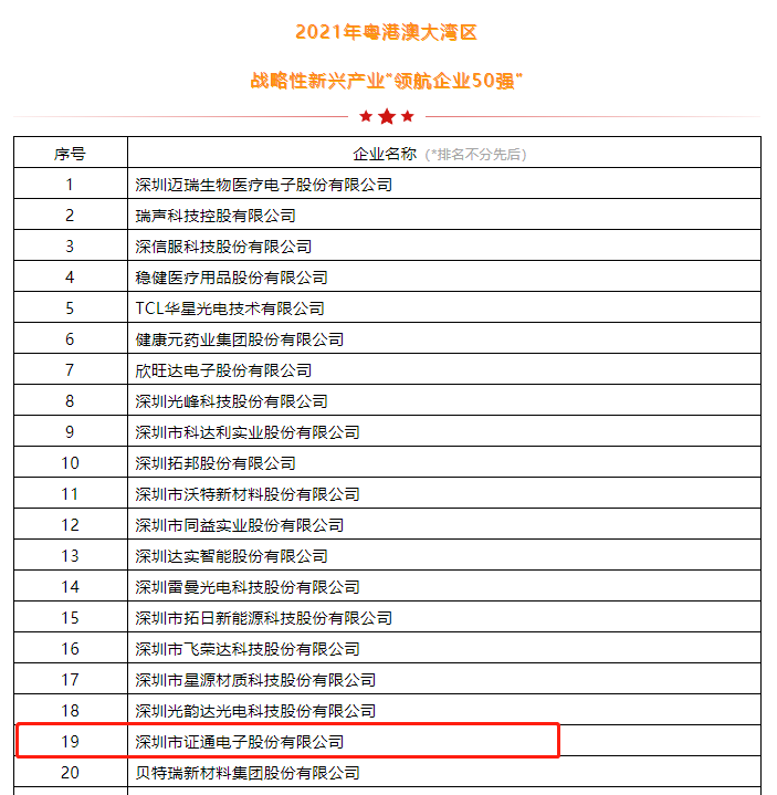 8月31日,由深圳市戰(zhàn)略性新興產(chǎn)業(yè)發(fā)展促進(jìn)會(huì)聯(lián)合深圳報(bào)業(yè)集團(tuán)·深圳商報(bào)等單位開(kāi)展的2021年粵港澳大灣區(qū)戰(zhàn)略性新興產(chǎn)業(yè)“領(lǐng)航企業(yè)50強(qiáng)”暨首屆戰(zhàn)略性新興產(chǎn)業(yè)“拓荒人物”“青年領(lǐng)袖”評(píng)選結(jié)果正式揭曉。本次評(píng)選歷時(shí)6個(gè)月,經(jīng)過(guò)了新聞發(fā)布、征集報(bào)名、材料初篩和實(shí)地考察、評(píng)委終審等環(huán)節(jié),最終在400余家企業(yè)中確定了榜單。證通電子、邁瑞醫(yī)療、瑞聲科技、深信服等50家企業(yè)上榜“領(lǐng)航企業(yè)50強(qiáng)”名單。