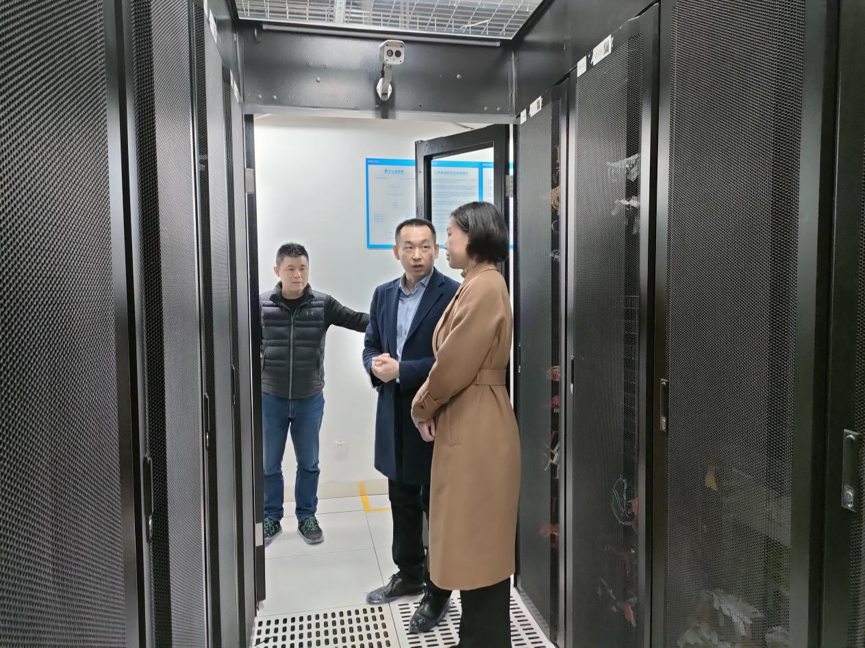 周艷希副市長一行首先考察了長沙證通電信1#棟數據中心,隨后參觀了位于園區的湖南省醫療云機房、高低壓配電室、電池室、冷凍器室等設備室。深入了解了目前1#棟數據中心的投資規模、用電耗能以及機柜結算等情況。詳細詢問了數據機房目前的上電體量以及合作模式等問題,長沙證通云計算有限公司總經理鄧軍對相關情況進行了詳細匯報。