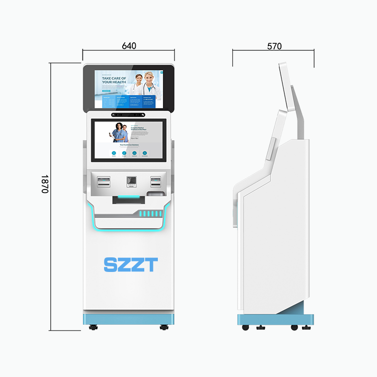 全新ZT2618-A系,采用雙屏設計,一機多用 ,上屏顯示,可投放廣告、宣傳政策或指引操作。下屏觸摸,支持多點觸控,操作流暢自然。實現了信息分流和最大化展示,使用戶了解信息更直觀、更全面。開放式打印通道,能實時關注打印狀態,操作體驗更好。新材質應用與個性化燈光設計,使產品更具品牌識別性,更有吸引力。